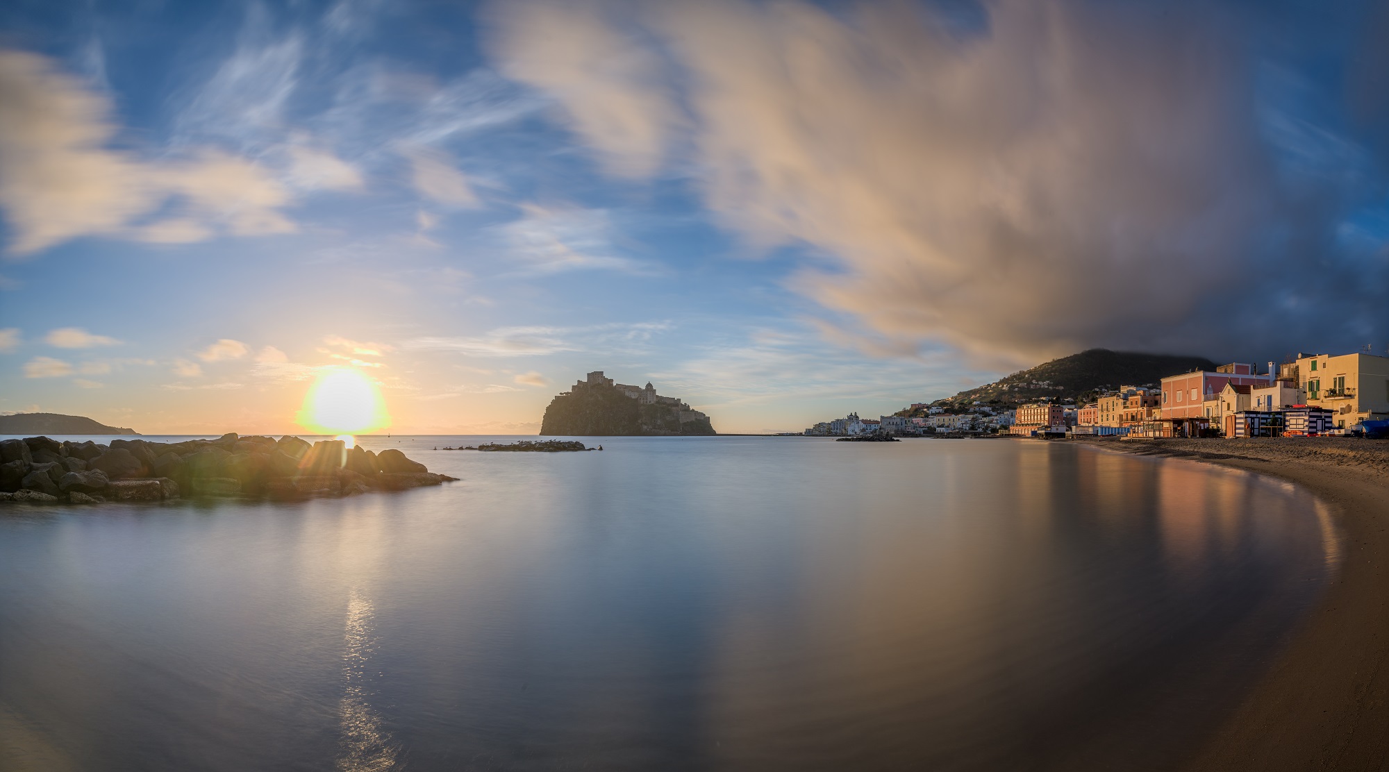 Escursione in motonave con circumnavigazione dell'isola e soste bagno nelle baie più suggestive, scelte in base al meteo. Partenza dai moli di Forio, Lacco Ameno e Casamicciola; per Ischia Porto e Barano è possibile il trasferimento hotel-porto in minibus.