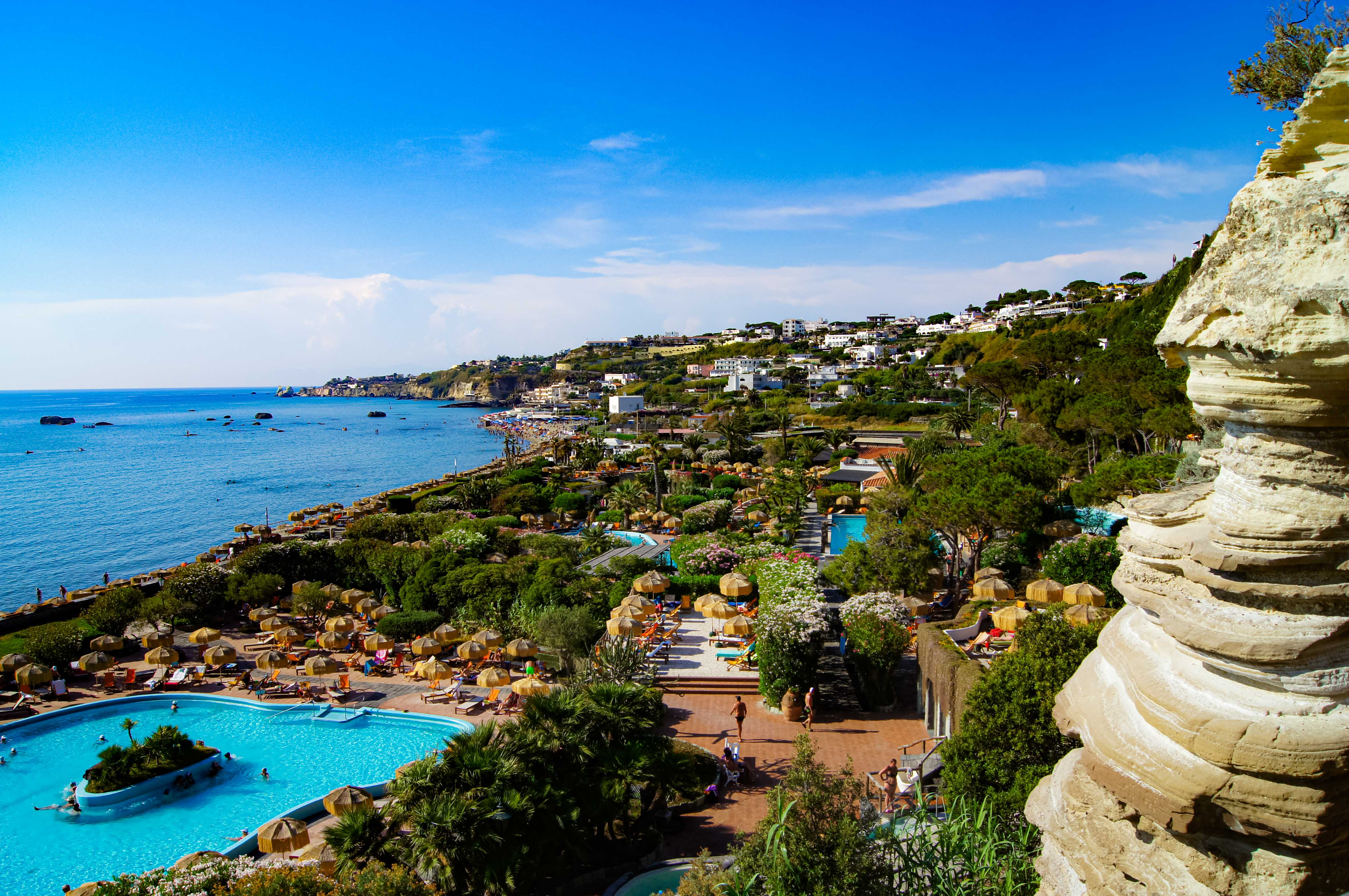 Situati nella splendida Baia di Citara a Forio, i Giardini Poseidon costituiscono il più grande parco termale dell'isola. Circondati dai profumi e dai colori di rose, fiori, pini, ulivi e cactus, i visitatori possono godere dei benefici di 20 piscine termali, le cui acque sgorgano dal suolo vulcanico con riconosciute proprietà terapeutiche.